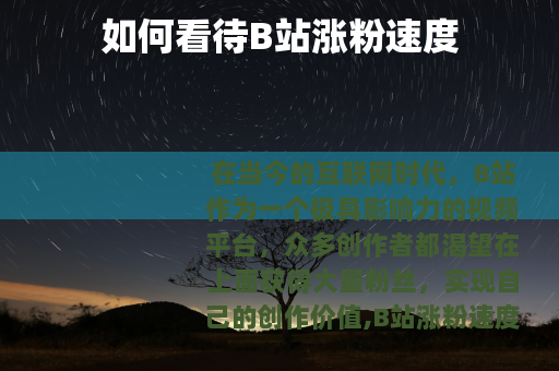 在当今的互联网时代,B站作为一个极具影响力的视频平台,众多创作者都渴望在上面获得大量粉丝,实现自己的创作价值,B站涨粉速度究竟该怎么看呢?