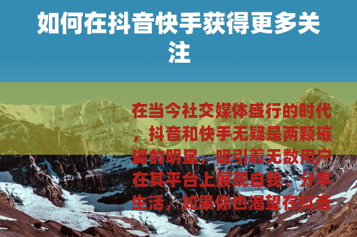 在当今社交媒体盛行的时代,抖音和快手无疑是两颗璀璨的明星,吸引着无数用户在其平台上展现自我、分享生活,如果你也渴望在抖音快手获得更多关注,那么以下这些方法或许能助你一臂之力。