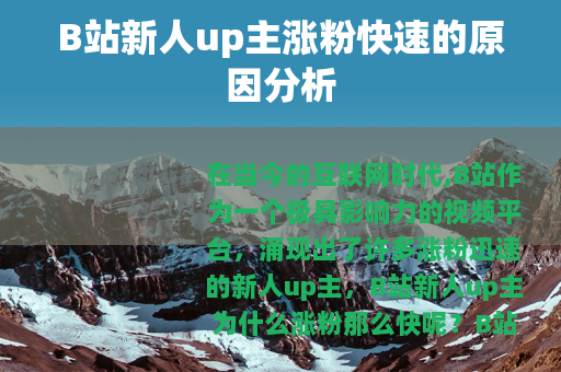 在当今的互联网时代,B站作为一个极具影响力的视频平台,涌现出了许多涨粉迅速的新人up主,B站新人up主为什么涨粉那么快呢?