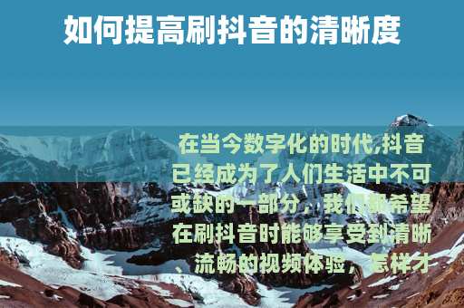 在当今数字化的时代,抖音已经成为了人们生活中不可或缺的一部分,我们都希望在刷抖音时能够享受到清晰、流畅的视频体验,怎样才能提高刷抖音的清晰度呢?