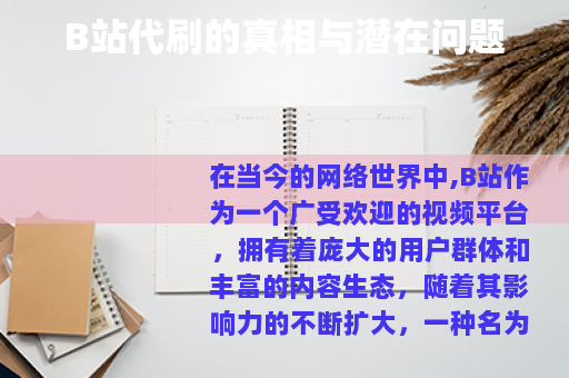 在当今的网络世界中,B站作为一个广受欢迎的视频平台,拥有着庞大的用户群体和丰富的内容生态,随着其影响力的不断扩大,一种名为“B站代刷”的现象也悄然兴起。