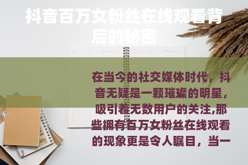 在当今的社交媒体时代,抖音无疑是一颗璀璨的明星,吸引着无数用户的关注,那些拥有百万女粉丝在线观看的现象更是令人瞩目。