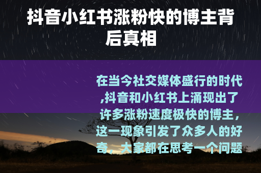 在当今社交媒体盛行的时代,抖音和小红书上涌现出了许多涨粉速度极快的博主,这一现象引发了众多人的好奇,大家都在思考一个问题:这些涨粉很快的博主是充钱了吗?