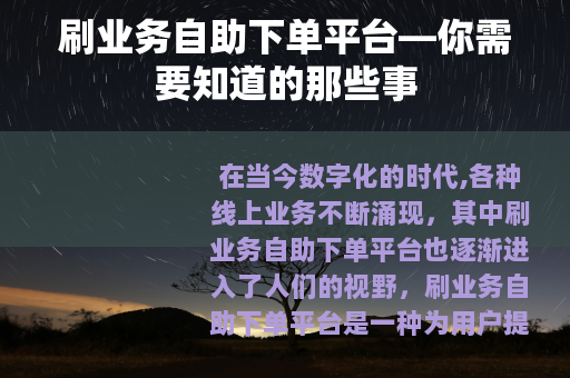 在当今数字化的时代,各种线上业务不断涌现,其中刷业务自助下单平台也逐渐进入了人们的视野。