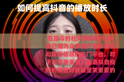 在当今的社交媒体时代,抖音已成为众多用户展示自我和获取信息的热门平台,对于创作者来说,提高抖音视频的播放时长是至关重要的,它不仅能增加视频的曝光度,还能提升账号的活跃度和影响力,究竟该怎么提高抖音的播放时长呢? 的质量是关键,要确保视频内容具有吸引力和价值,能够真正引起观众的兴趣,这可以通过深入了解目标受众的喜好和需求来实现,如果你的受众主要是年轻人,那么可以制作一些时尚、潮流、娱乐或科技相关的内容,内容要有独特性,避免千篇一律,让观众在众多视频中能够一眼就被你的作品所吸引。