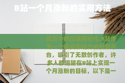 在当今的互联网时代,B站作为一个极具影响力的视频平台,吸引了无数创作者,许多人都渴望在B站上实现一个月涨粉的目标,以下是一些切实可行的方法。 创作是关键,要想在B站快速涨粉,必须提供有价值、有趣且独特的内容,了解目标受众的兴趣点,针对他们的喜好制作视频,如果你的受众是年轻人,可以制作关于流行文化、游戏攻略、美食探店等热门话题的视频,确保视频的质量,包括清晰的画面、良好的音质以及流畅的剪辑,高质量的内容能够让观众更愿意停留和关注你的频道。