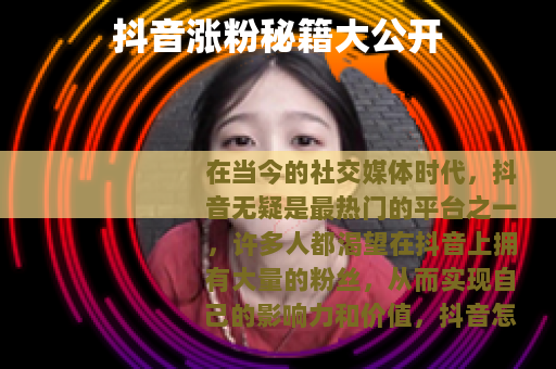 在当今的社交媒体时代,抖音无疑是最热门的平台之一,许多人都渴望在抖音上拥有大量的粉丝,从而实现自己的影响力和价值,抖音怎么涨粉丝呢?以下是一些实用的方法。 是关键,要确保你的视频内容具有独特性和吸引力,可以从自己的兴趣爱好、特长技能出发,制作出能够展示个性和专业度的视频,如果你擅长烹饪,那就可以拍摄一系列精美的美食制作视频,详细地展示每一个步骤和独特的烹饪技巧,让观众在观看的过程中不仅能够学到知识,还能感受到美食的魅力,要注意视频的趣味性,通过幽默的语言、有趣的情节或意外的转折来吸引观众的注意力,让他们在轻松愉快的氛围中看完你的视频,并且产生想要关注你的欲望。