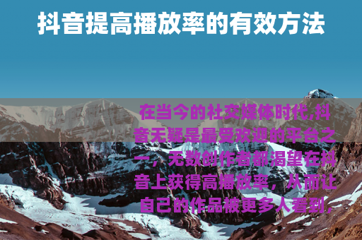 在当今的社交媒体时代,抖音无疑是最受欢迎的平台之一,无数创作者都渴望在抖音上获得高播放率,从而让自己的作品被更多人看到,抖音怎样才能让播放率提高呢?以下是一些实用的方法。 质量是关键,要确保你的视频内容具有吸引力和独特性,可以从用户的兴趣点出发,比如美食、旅游、时尚、健身等热门领域,或者挖掘一些小众但有特定受众群体的话题,在制作视频时,要注重画面的清晰度和稳定性,避免模糊或晃动的画面影响用户体验,声音也要清晰,搭配合适的背景音乐可以增强视频的氛围和感染力。