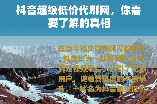 在当今社交媒体风靡的时代,抖音作为一款极具影响力的短视频平台,吸引了无数用户,随着其热度的不断攀升,一种名为抖音超级低价代刷网的现象也悄然出现。