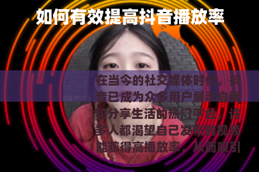 通过以上这些方法的综合运用,你就有更大的机会提高抖音播放率,在抖音这个充满活力的平台上获得更多的关注和成功,不断尝试和优化,找到最适合自己的方式,让你的抖音之旅更加精彩。