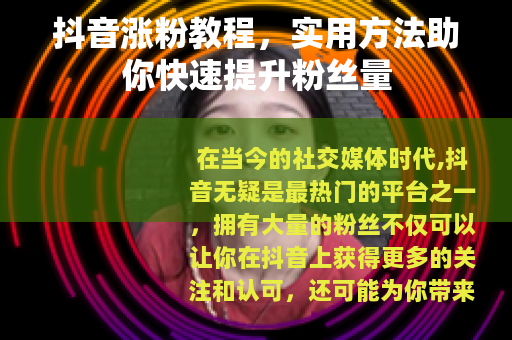 在当今的社交媒体时代,抖音无疑是最热门的平台之一,拥有大量的粉丝不仅可以让你在抖音上获得更多的关注和认可,还可能为你带来各种商业机会,如何在抖音上快速涨粉呢?下面就为大家分享一些实用的抖音涨粉教程。