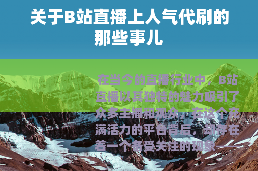 在当今的直播行业中,B站直播以其独特的魅力吸引了众多主播和观众,在这个充满活力的平台背后,却存在着一个备受关注的现象——B站直播上的人气代刷。