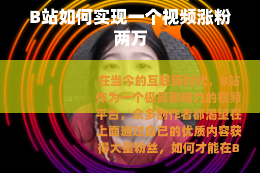 在当今的互联网时代,B站作为一个极具影响力的视频平台,众多创作者都渴望在上面通过自己的优质内容获得大量粉丝,如何才能在B站做到一个视频涨粉两万呢? 的独特性至关重要,创作者需要找到自己擅长且有特色的领域,有的人擅长制作搞笑幽默的动画视频,通过夸张的角色形象和有趣的故事情节吸引观众;有的人则专注于知识科普,以深入浅出的方式讲解专业知识,满足用户的求知欲,只有当你的内容在众多视频中脱颖而出,才能吸引更多用户的关注。