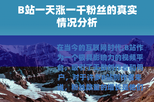 在当今的互联网时代,B站作为一个极具影响力的视频平台,吸引了无数创作者和用户,对于许多B站创作者来说,粉丝数量的增长是他们非常关注的一个指标,B站一天涨一千粉丝究竟是什么程度呢?