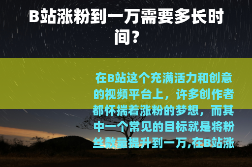 在B站这个充满活力和创意的视频平台上,许多创作者都怀揣着涨粉的梦想,而其中一个常见的目标就是将粉丝数量提升到一万,在B站涨粉到一万大概需要多久呢?