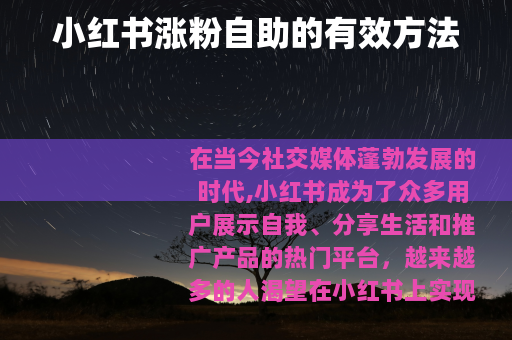 在当今社交媒体蓬勃发展的时代,小红书成为了众多用户展示自我、分享生活和推广产品的热门平台,越来越多的人渴望在小红书上实现涨粉,从而扩大自己的影响力和商业价值,而小红书涨粉自助也成为了许多人关注的焦点。