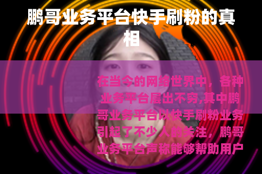 在当今的网络世界中,各种业务平台层出不穷,其中鹏哥业务平台以快手刷粉业务引起了不少人的关注。