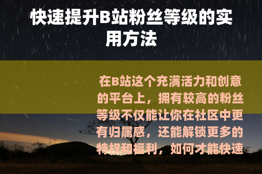 在B站这个充满活力和创意的平台上,拥有较高的粉丝等级不仅能让你在社区中更有归属感,还能解锁更多的特权和福利,如何才能快速提升B站的粉丝等级呢?以下是一些实用的方法。