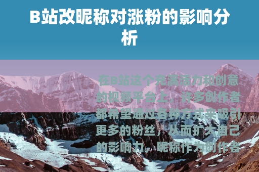在B站这个充满活力和创意的视频平台上,许多创作者都希望通过各种方式来吸引更多的粉丝,从而扩大自己的影响力,昵称作为创作者在平台上的重要标识之一,不少人会思考一个问题:B站改昵称会影响涨粉吗?