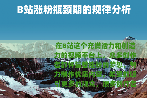 在B站这个充满活力和创造力的视频平台上,众多创作者都怀揣着涨粉的梦想,努力制作优质内容,希望能吸引更多的观众,很多创作者在发展过程中会遇到一个普遍的问题,那就是涨粉瓶颈期,B站涨粉瓶颈期多久一次呢?