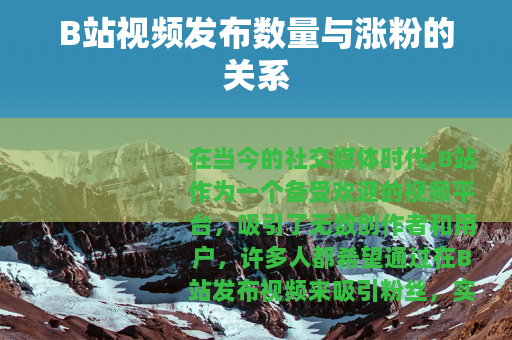 在当今的社交媒体时代,B站作为一个备受欢迎的视频平台,吸引了无数创作者和用户,许多人都希望通过在B站发布视频来吸引粉丝,实现自己的创作价值和影响力,B站视频发多少能涨粉丝呢?这是一个众多创作者关心的重要问题。