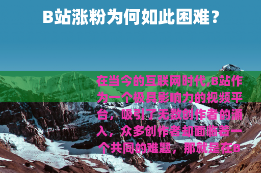 在当今的互联网时代,B站作为一个极具影响力的视频平台,吸引了无数创作者的涌入,众多创作者却面临着一个共同的难题,那就是在B站很难涨粉。