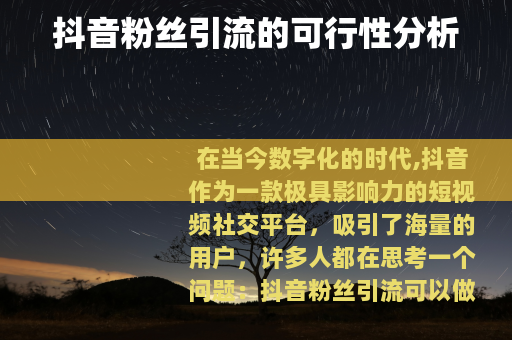 在当今数字化的时代,抖音作为一款极具影响力的短视频社交平台,吸引了海量的用户,许多人都在思考一个问题:抖音粉丝引流可以做吗?