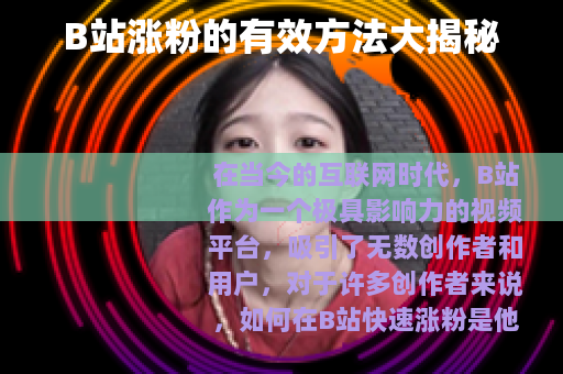 在当今的互联网时代,B站作为一个极具影响力的视频平台,吸引了无数创作者和用户,对于许多创作者来说,如何在B站快速涨粉是他们最为关心的问题之一,以下是一些能够帮助你在B站涨粉快点的实用方法。 质量是关键,要确保你的视频内容具有独特性和吸引力,深入了解你的目标受众,制作出他们感兴趣的视频主题,无论是搞笑、知识科普、游戏攻略还是生活趣事等,只要能抓住观众的眼球,就能吸引他们关注你的账号,在制作视频时,要注重画面质量,保证清晰、流畅,同时声音也要清晰可听,这样才能给观众带来良好的观看体验。