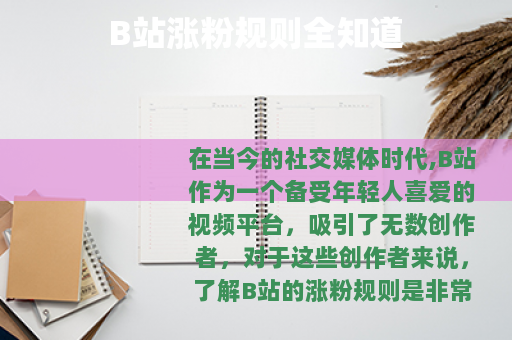 在当今的社交媒体时代,B站作为一个备受年轻人喜爱的视频平台,吸引了无数创作者,对于这些创作者来说,了解B站的涨粉规则是非常重要的,它能帮助创作者们更好地在平台上发展,吸引更多的粉丝关注。 的质量是在B站涨粉的关键,高质量的视频内容能够吸引用户的关注并让他们产生兴趣,从而更愿意关注你的账号,这意味着视频要有清晰的画面、良好的音质,以及有价值、有趣或独特的主题,无论是知识分享、搞笑娱乐还是才艺展示,只要能为观众带来某种价值或欢乐,就有可能获得更多的点赞、评论和分享,进而增加粉丝量。
