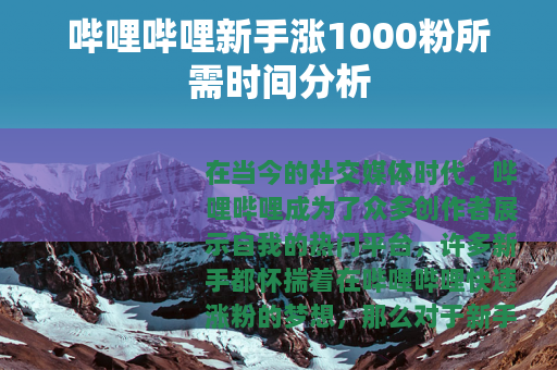 在当今的社交媒体时代,哔哩哔哩成为了众多创作者展示自我的热门平台,许多新手都怀揣着在哔哩哔哩快速涨粉的梦想,那么对于新手来说,在哔哩哔哩涨1000粉需要多久呢?