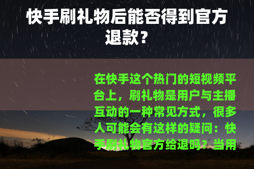 在快手这个热门的短视频平台上,刷礼物是用户与主播互动的一种常见方式,很多人可能会有这样的疑问:快手刷礼物官方给退吗?