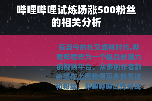 在当今的社交媒体时代,哔哩哔哩作为一个极具影响力的视频平台,众多创作者都希望在上面获得更多的关注和粉丝,哔哩哔哩试炼场成为了许多人试图提升粉丝量的一个途径,在哔哩哔哩试炼场涨500粉丝需要多少投入或者付出呢?