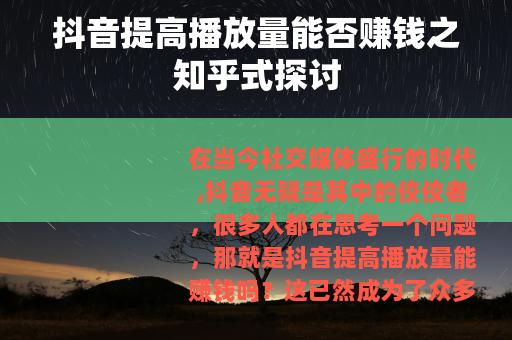 在当今社交媒体盛行的时代,抖音无疑是其中的佼佼者,很多人都在思考一个问题,那就是抖音提高播放量能赚钱吗?这已然成为了众多抖音创作者以及想要涉足抖音领域的人们最为关心的话题之一。