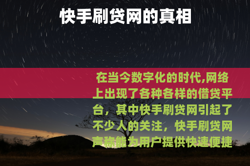 在当今数字化的时代,网络上出现了各种各样的借贷平台,其中快手刷贷网引起了不少人的关注。