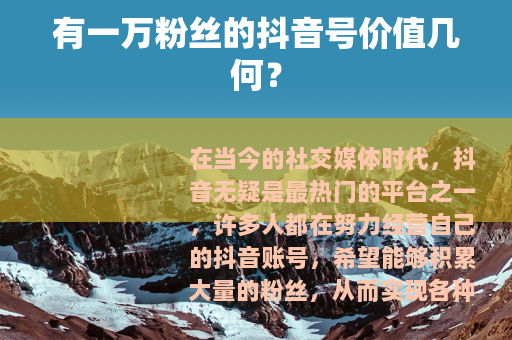 在当今的社交媒体时代,抖音无疑是最热门的平台之一,许多人都在努力经营自己的抖音账号,希望能够积累大量的粉丝,从而实现各种商业价值或个人目标,当一个抖音号拥有一万粉丝时,它究竟值多少钱呢?