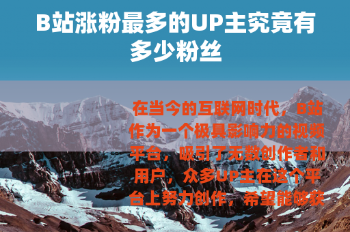 在当今的互联网时代,B站作为一个极具影响力的视频平台,吸引了无数创作者和用户,众多UP主在这个平台上努力创作,希望能够获得更多的关注和粉丝,大家都很好奇,B站涨粉最多的UP主到底有多少粉丝呢?