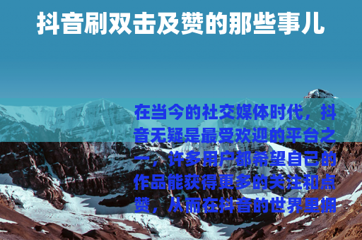 在当今的社交媒体时代,抖音无疑是最受欢迎的平台之一,许多用户都希望自己的作品能获得更多的关注和点赞,从而在抖音的世界里拥有更高的人气,一些关于抖音刷双击和赞的话题便应运而生。