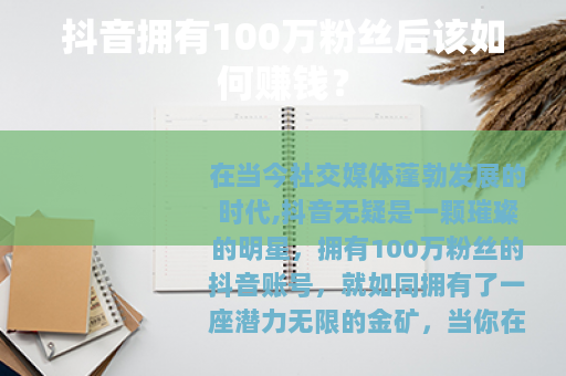 在当今社交媒体蓬勃发展的时代,抖音无疑是一颗璀璨的明星,拥有100万粉丝的抖音账号,就如同拥有了一座潜力无限的金矿,当你在抖音上拥有100万粉丝后,该如何将其转化为实际的收益呢?