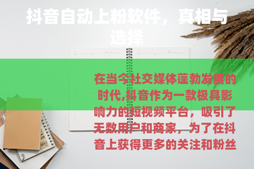 在当今社交媒体蓬勃发展的时代,抖音作为一款极具影响力的短视频平台,吸引了无数用户和商家,为了在抖音上获得更多的关注和粉丝,一些人开始寻找所谓的抖音自动上粉软件,希望能够快速提升自己的账号人气,在考虑使用这类软件之前,我们需要对其有一个全面而清晰的了解。