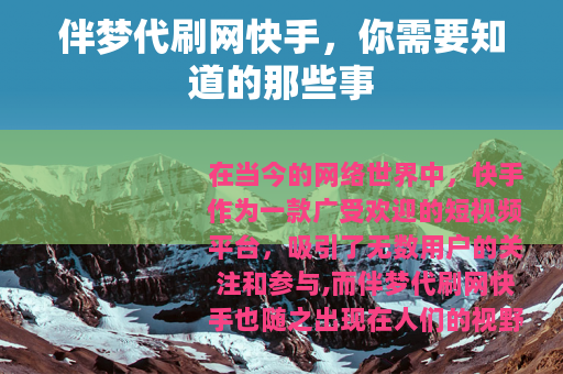 在当今的网络世界中,快手作为一款广受欢迎的短视频平台,吸引了无数用户的关注和参与,而伴梦代刷网快手也随之出现在人们的视野中。