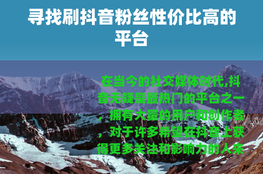 在当今的社交媒体时代,抖音无疑是最热门的平台之一,拥有大量的用户和创作者,对于许多希望在抖音上获得更多关注和影响力的人来说,粉丝数量是一个重要的指标,市场上出现了各种各样声称可以刷抖音粉丝的平台,其中不乏一些打着“最便宜”旗号的。
