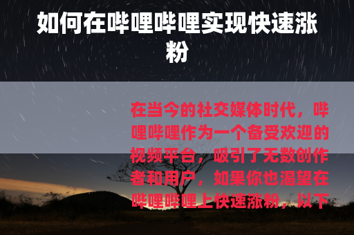 在哔哩哔哩上快速涨粉需要付出努力和时间,不断优化自己的内容和运营策略,才能吸引更多的观众关注,实现粉丝的快速增长。