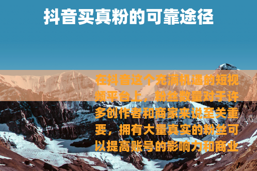 在抖音这个充满机遇的短视频平台上,粉丝数量对于许多创作者和商家来说至关重要,拥有大量真实的粉丝可以提高账号的影响力和商业价值,抖音去哪里买真粉呢?