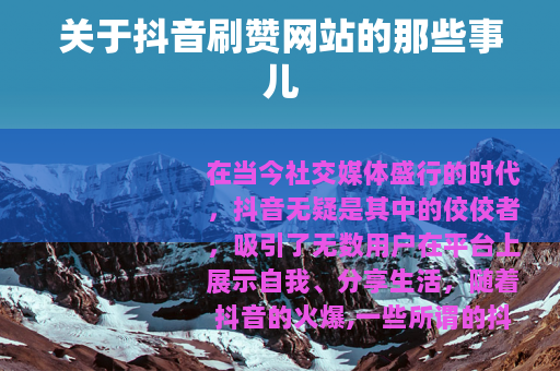 在当今社交媒体盛行的时代,抖音无疑是其中的佼佼者,吸引了无数用户在平台上展示自我、分享生活,随着抖音的火爆,一些所谓的抖音刷赞网站也悄然出现。
