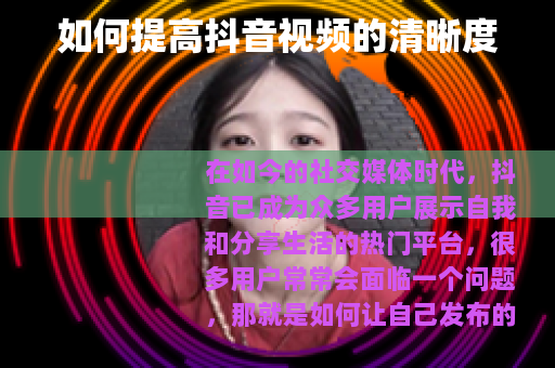 在如今的社交媒体时代,抖音已成为众多用户展示自我和分享生活的热门平台,很多用户常常会面临一个问题,那就是如何让自己发布的抖音视频具有更高的清晰度,从而为观众带来更好的观看体验呢?以下是一些实用的方法可以帮助你提高抖音视频的清晰度。