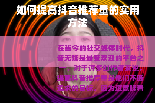在当今的社交媒体时代,抖音无疑是最受欢迎的平台之一,对于许多创作者来说,提高抖音推荐量是他们不断追求的目标,因为这意味着更多的曝光、更多的粉丝以及更大的影响力,怎么能提高抖音推荐量呢?以下是一些实用的方法。 质量是关键,抖音用户喜欢有趣、有价值、有创意的内容,在创作视频时,要确保你的内容能够吸引观众的注意力并让他们产生共鸣,可以从热门话题入手,结合自己的特色和风格,制作出独特的视频,如果你擅长烹饪,那么可以制作一些独特的美食制作视频,分享一些烹饪技巧和小窍门,这样的内容往往能吸引到大量的美食爱好者。