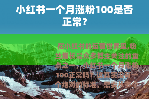 在小红书的运营世界里,粉丝增长是众多博主关注的重点之一,小红书一个月涨粉100正常吗?这其实没有一个绝对的标准,需要从多个方面来综合考量。