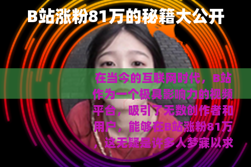 要在B站涨粉81万并非一蹴而就的事情,需要付出持续的努力和耐心,通过不断优化内容、保持更新、加强互动以及注重细节等多方面的努力,才能在这个竞争激烈的平台上取得优异的成绩,实现粉丝的快速增长,为自己的创作之路打下坚实的基础。