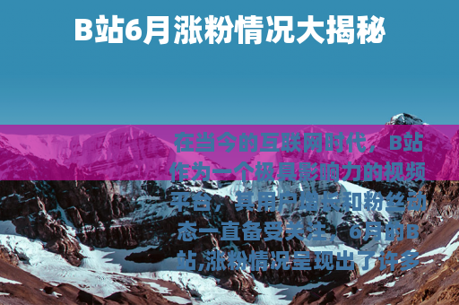 在当今的互联网时代,B站作为一个极具影响力的视频平台,其用户增长和粉丝动态一直备受关注,6月的B站,涨粉情况呈现出了许多有趣的特点。
