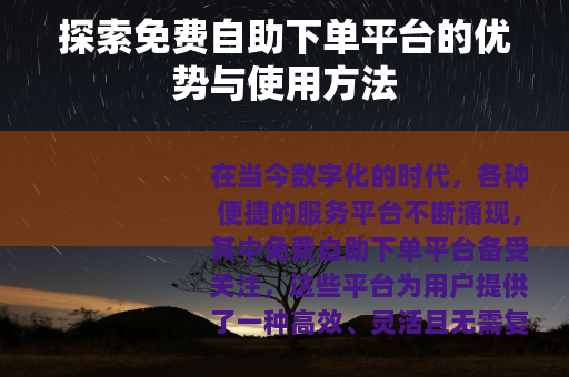 在当今数字化的时代,各种便捷的服务平台不断涌现,其中免费自助下单平台备受关注,这些平台为用户提供了一种高效、灵活且无需复杂操作的下单方式,满足了众多用户在不同场景下的需求。